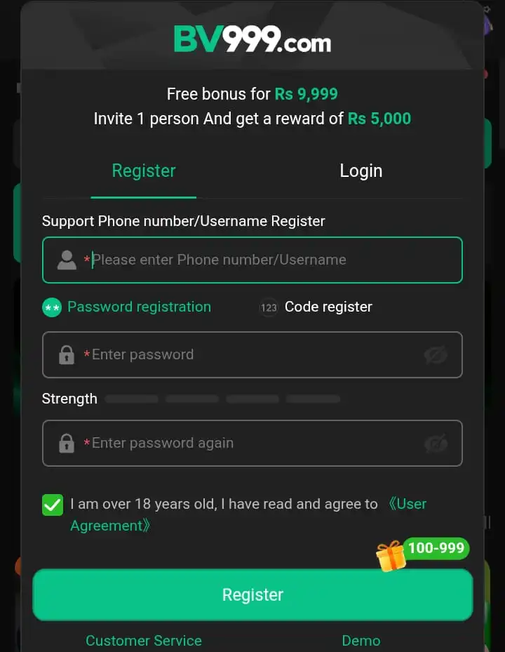 How to Register on BV999 Game (Step-by-Step):