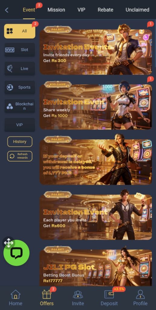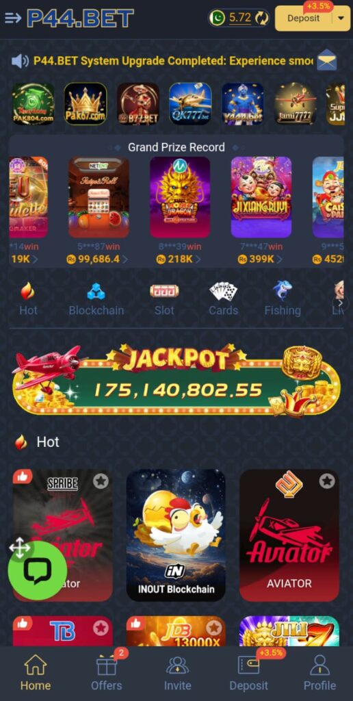 P44.bet Game is new version app in Pakistan day by day millions of people searching for new casino games Which gives the earning and internment. Today we bring a brilliant ,fantastic game for our users to play and earn cash ,with lots of fun .The game introduced with P44.bet which is most popular in the world .Open the game and get welcome bonuses like register bonus, deposit bonus, daily login bonus ,free spins ,invite friend and get bonus. With fully secure if you face any problem related withdrawal ,etc. The customer service in available for 7/24 hours to solve the issue play the game and spend you time .