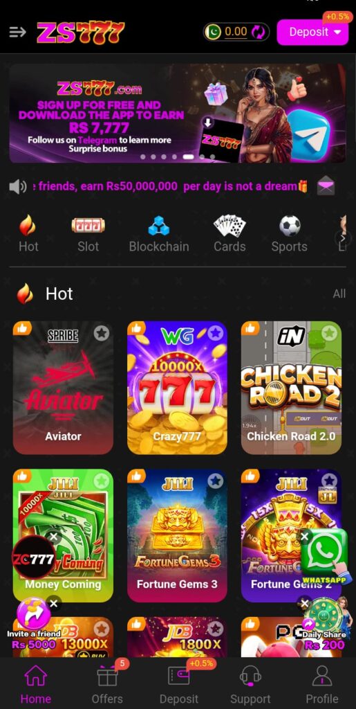 The main reason behind the popularity of ZS777 official Pakistan is simplicity. Users can register quickly and start playing without confusion. The app supports local payment methods, which helps users feel safe when depositing or withdrawing money.